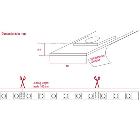 • Cutting length: 100 mm/6 LED/1.44 W