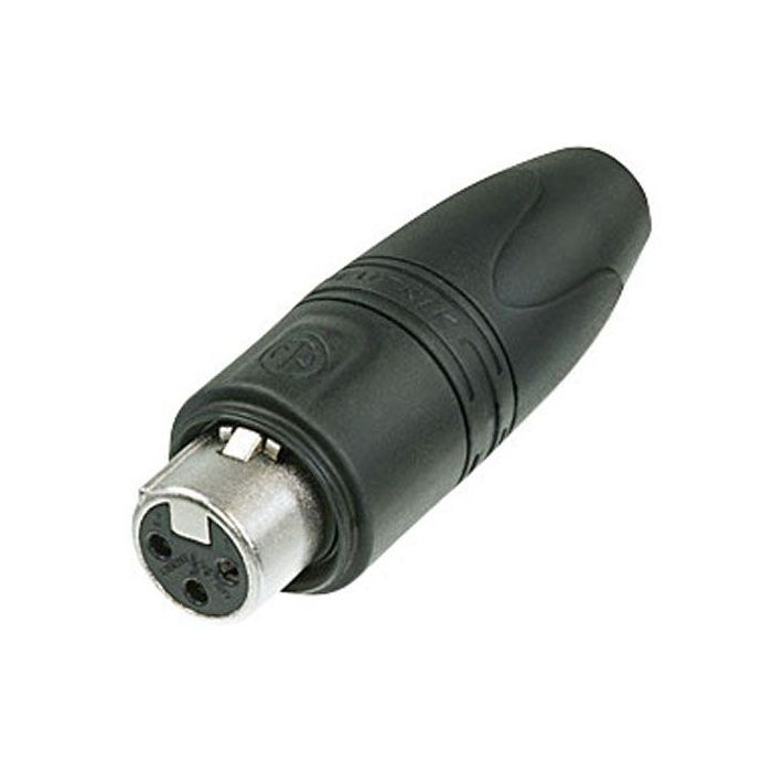 Neutrik XLR 'Heavy Duty' IP connector 3p Female Silver Housing, silver contactsNeutrik XLR 'Heavy Duty' IP connector 3p Female Silver Housing, silver contacts • "Heavy duty" cable connector for outdoor use • Rubber sealing jacket protects against water ingress and mechanical shock • Rugged zinc diecast shell, long-lasting and dependable • Internal thread on shell is well protected against any damageThe Neutrik XX-HDD Series is a "heavy duty" XLR cable connector for outdoor use. All metal design, dust and water protected according to IP 67 by mating with related XX-HDD cable connector.Specifications Electrical: Capacitance between contacts ≤ 4 pF Contact resistance ≤ 3 mΩ (inner) Rated current per contact 16 A Rated voltage 50 V Mechanical: Cabel O.D. 3,5 – 8,0 mm Wiresize max. 2.5 mm² Wiresize max. 14 AWG Wiring Solder contacts Locking device Latch lock Material: Boot Polyurethan Contacts Brass Insert Polyamide Shell Zinc diecast Shell plating Nickel Strain relief Polyacetal Environmental: Flammability UL 94 HB Standard compliance IEC 61076-2-103 Protection class IP 40 Solderability Complies with IEC 68-2-20 Temperature range -30 °C to +80 °C