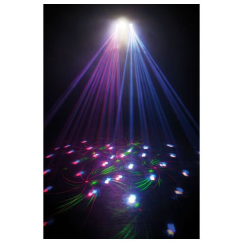 De Showtec X-Terminator is een 3-in-1 lichteffect dat 12 krachtige witte stroboscoop-LED's, een 130mW RG-lasermodule en een dubbel RGBWA moonflower-effect combineert. Alle 3 effecten kunnen afzonderlijk in automatische of geluidsgestuurde programma's geselecteerd worden. Het kan ook met DMX bestuurd worden om u volledige controle over alle functies te geven. De RG-laser heeft veel veelzijdige tralie- en burst-effecten en is uitgerust met een sleutelslot en vergrendeling op afstand. De stroboscoop heeft 12 secties met verschillende voorgeprogrammeerde patronen. Eén moonflower heeft RGB-kleuren en de andere is BWA. De X-terminator combineert 3 geweldige effecten met levendige kleuren om u van een totale lichtshow te voorzien in een compacte behuizing.